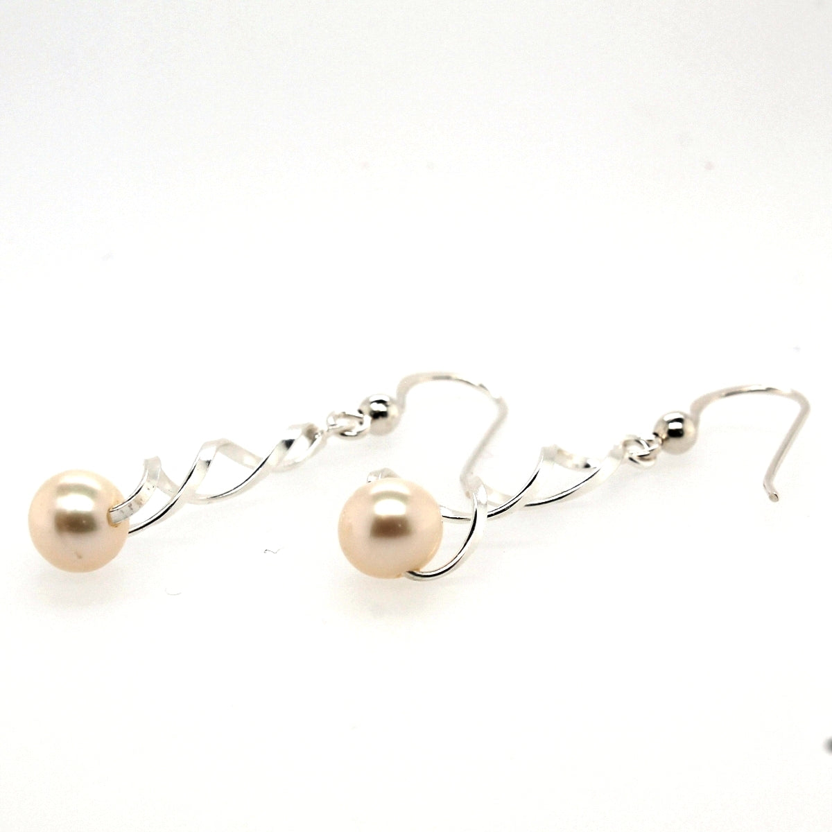 Silver Round Pearl And Twist Drop Earwire Earrings 6.5mm