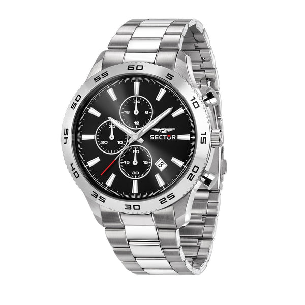 sector chronograph stainless steel black dial bracelet watch