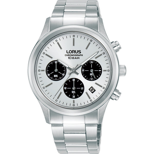 lorus quartz chronograph gents stainless steel white dial bracelet watch