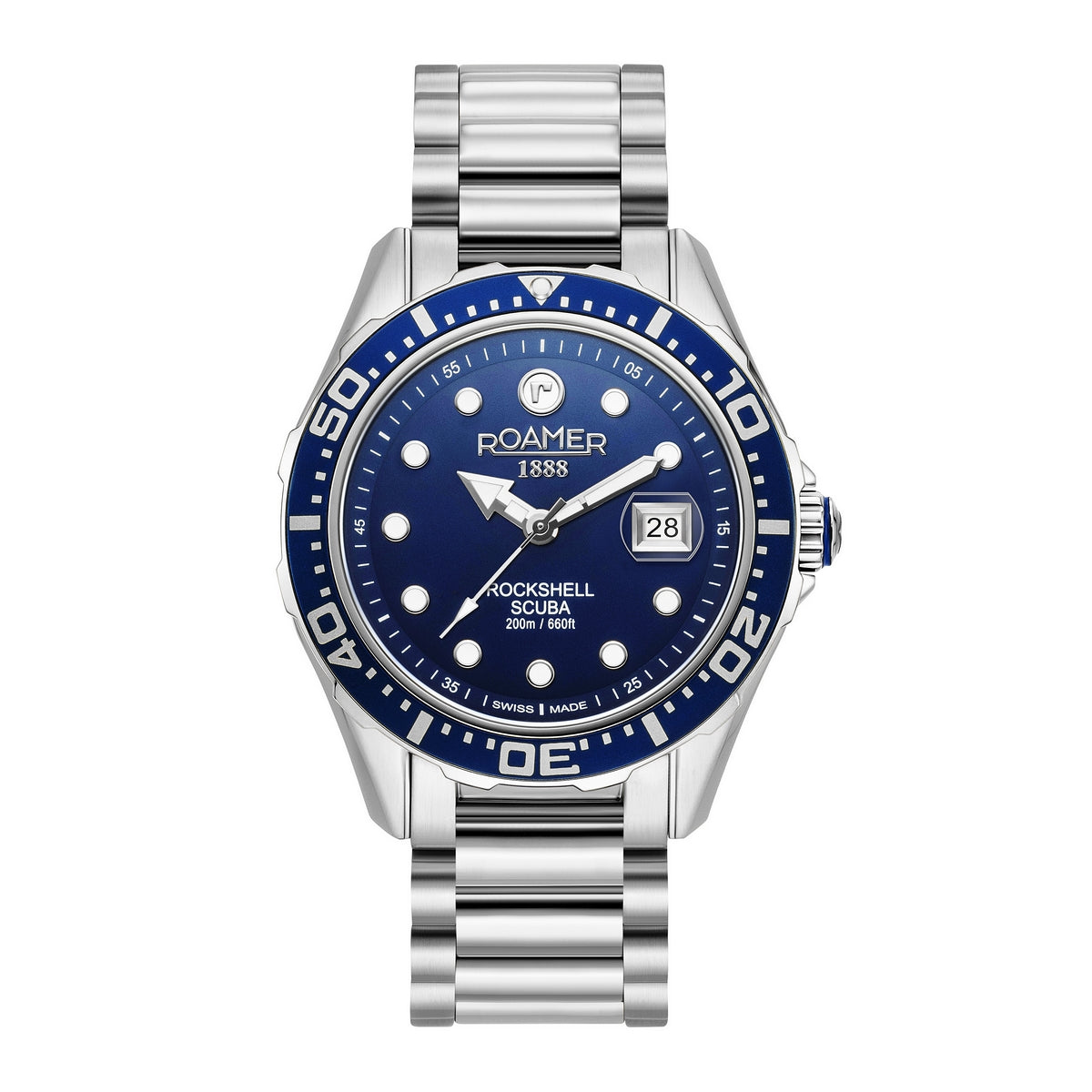 roamer rockshell mark3 scuba 3 hand quartz wristwatch analog battery stainless steel