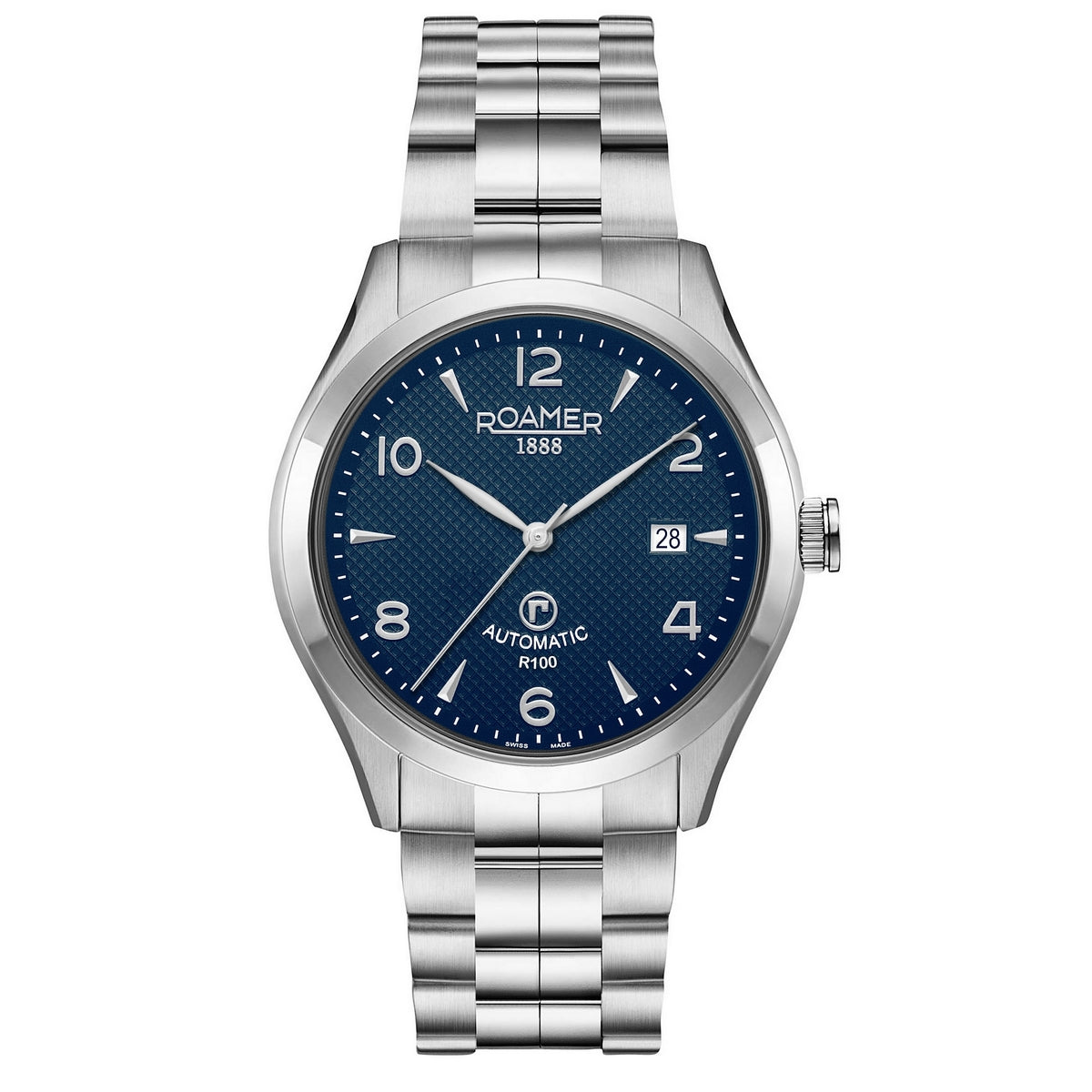 roamer r-100 automatic gents stainless steel blue dial bracelet watch