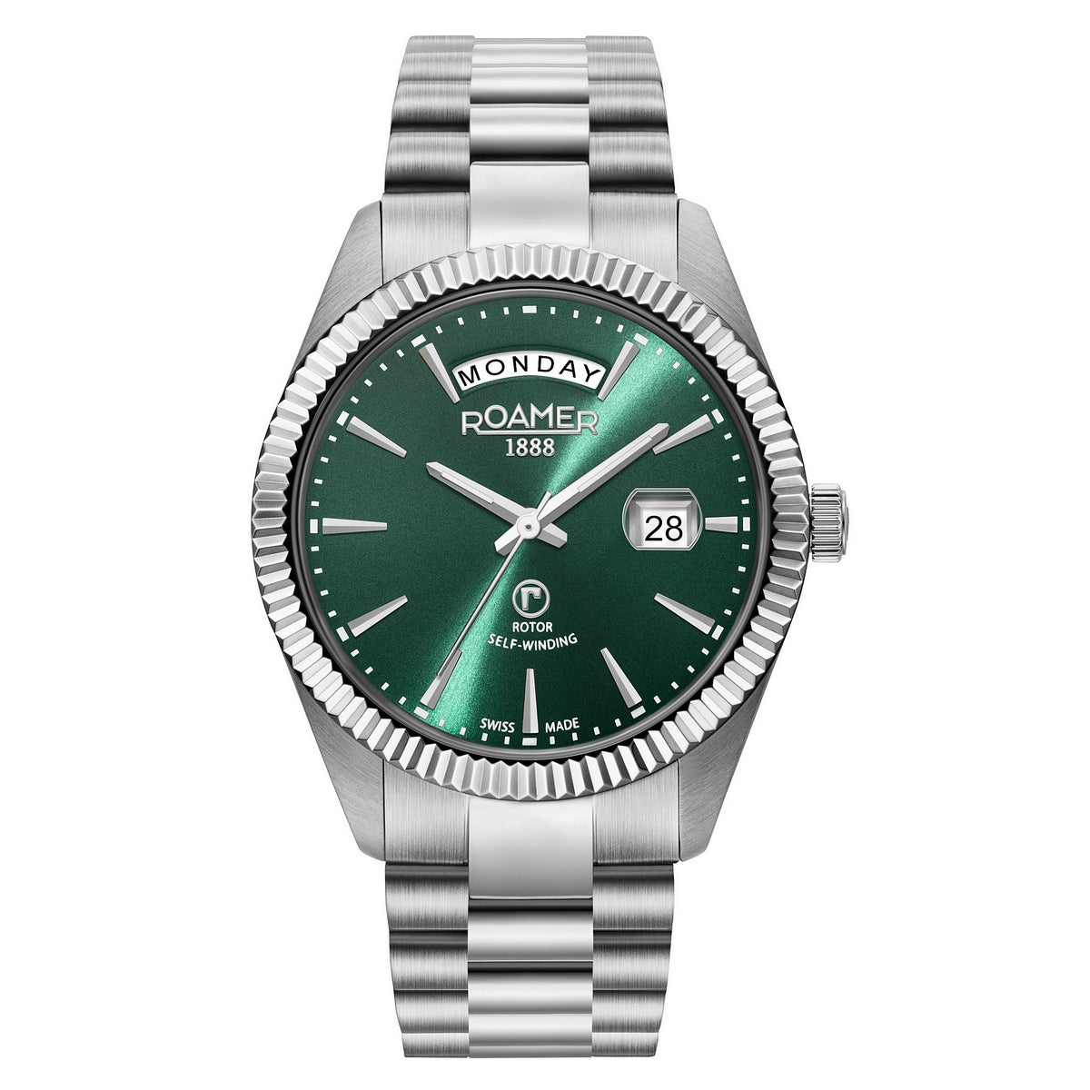 Roamer Primeline Daydate Swiss Made Automatic STP4-13 3 Hands - day & date Stainless Steel Mechanical Wrist-Watch - Analog - self winding
