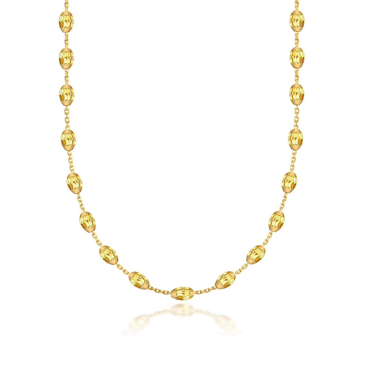 Sterling Silver 16" Goldplated Dia Cut Oval Bead Necklace