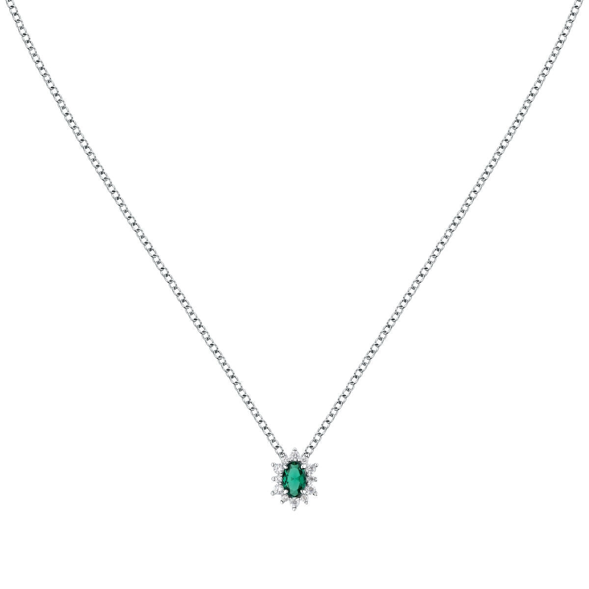 tesori pendant 925 silver white with emerald central cz 38+4cm