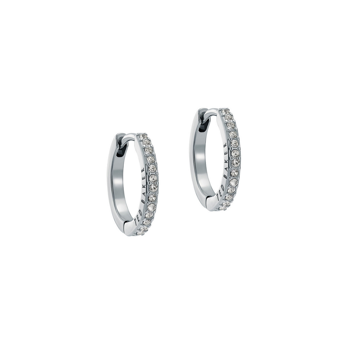 TED BAKER HEPLIE: Crystal Hoop Earrings (14mm) Silver Tone, Clear Crystal
