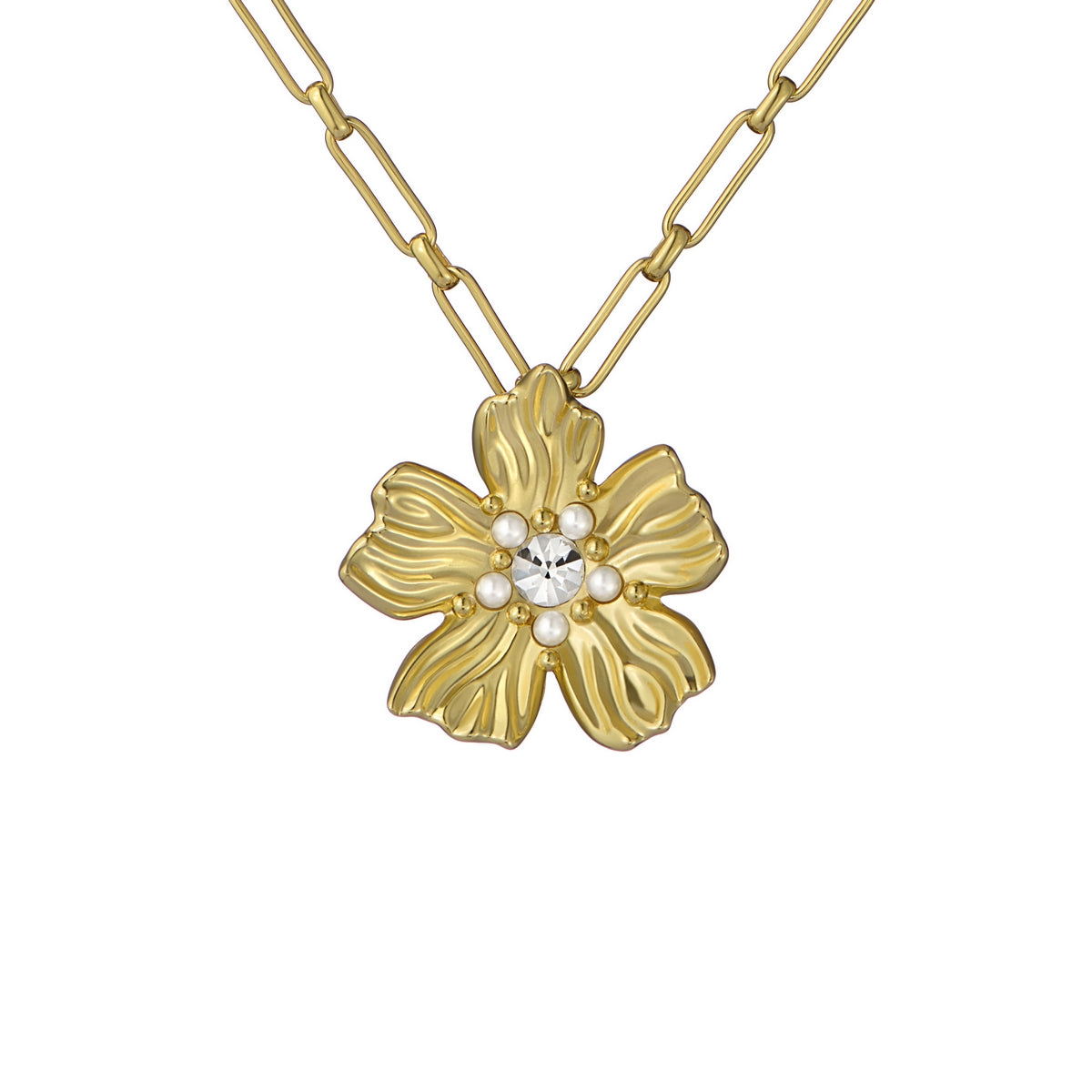 PETRICE: Flower Statement Crystal Pendant Necklace Gold Tone Clear crystal