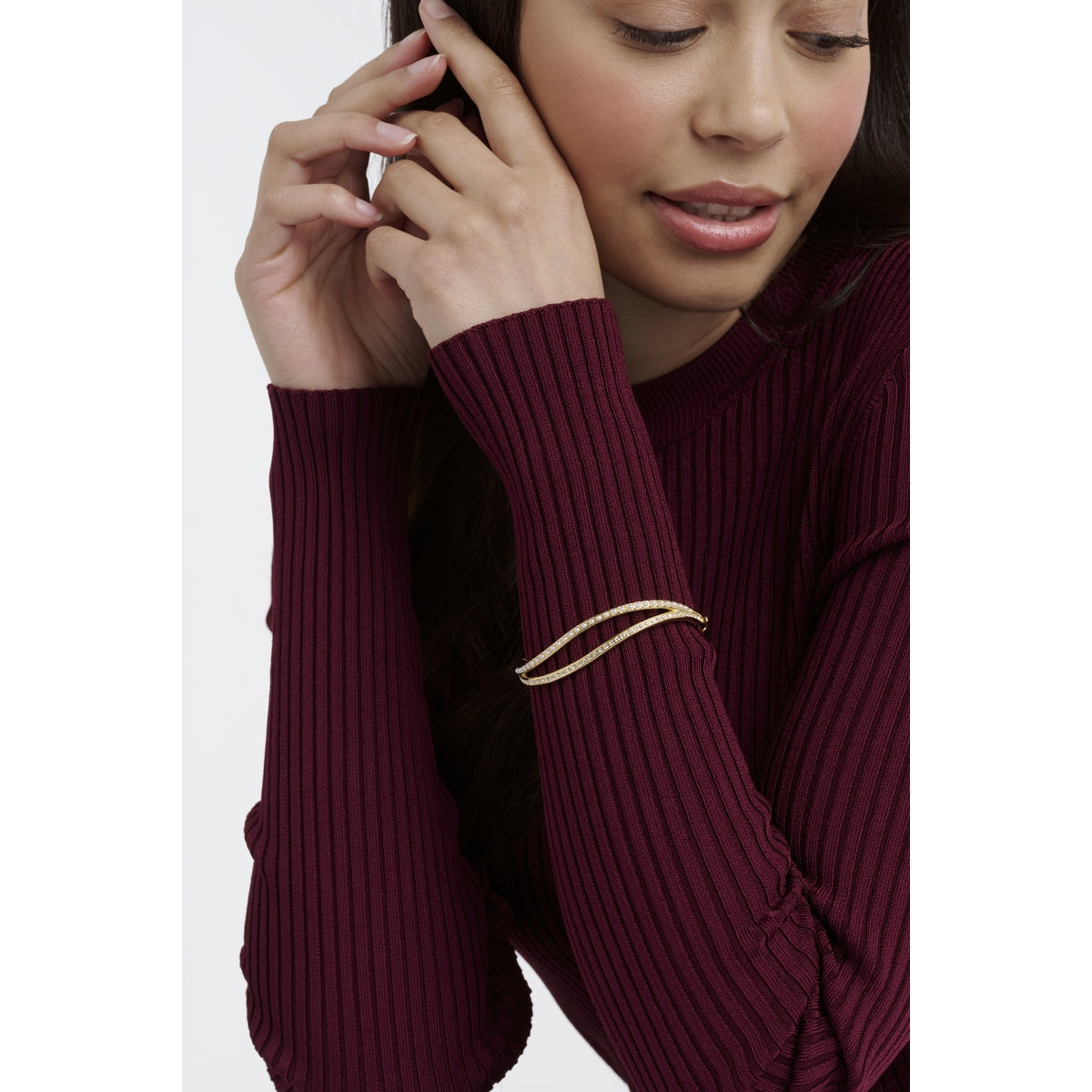TED BAKER WAVIE: Jewelled Wave Hinged Crystal Pearl Gold Tone Bangle Bracelet