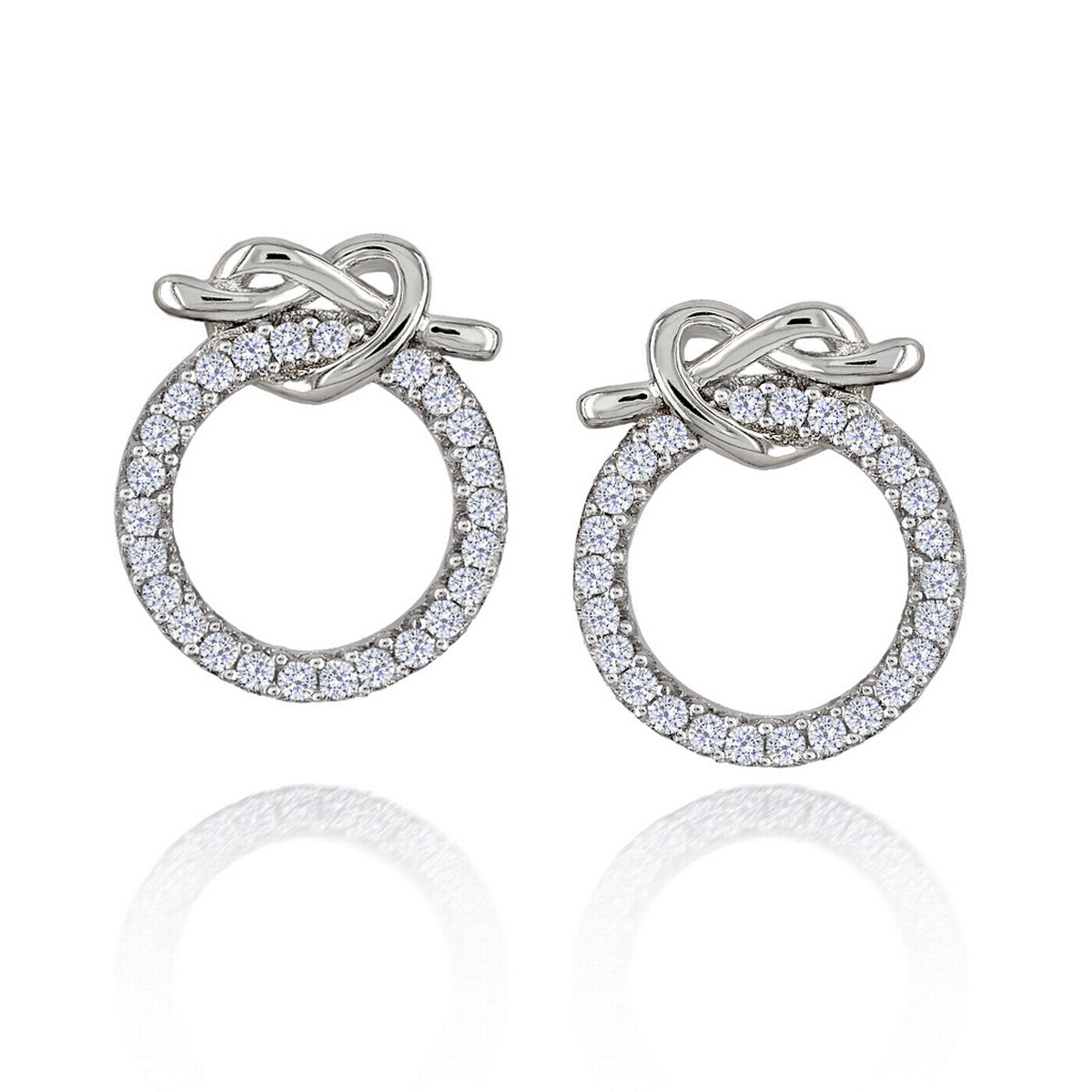 REAL EFFECT STONESET OUTER CIRCLE WITH PLAIN SILVER INTERTWINED HEART STUD EARRINGS