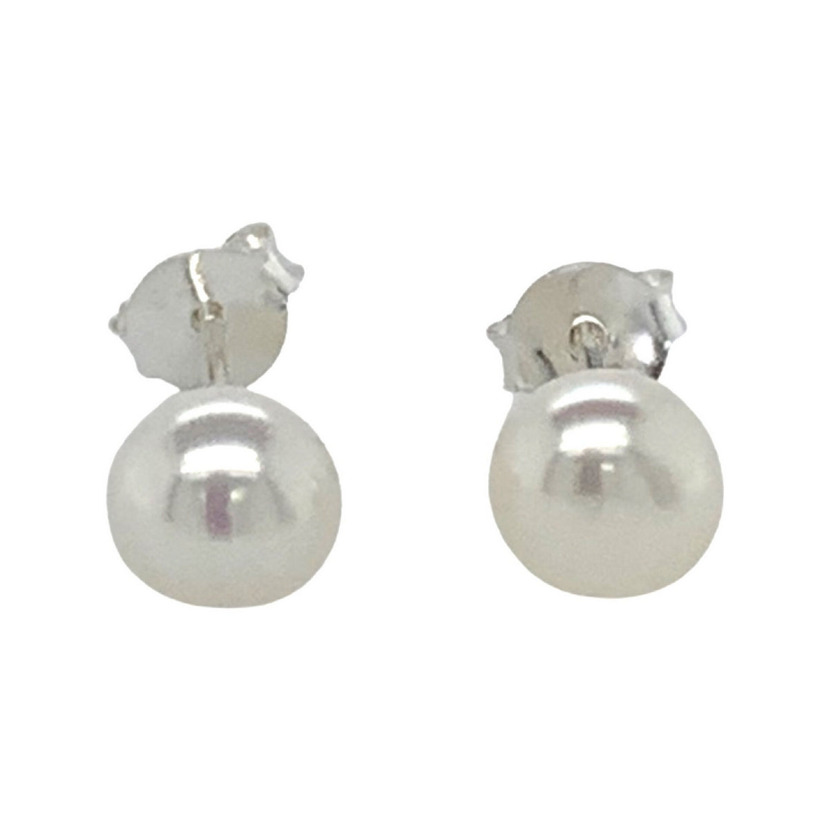 Silver Freshwater Pearl Stud Earrings 6-6.5mm