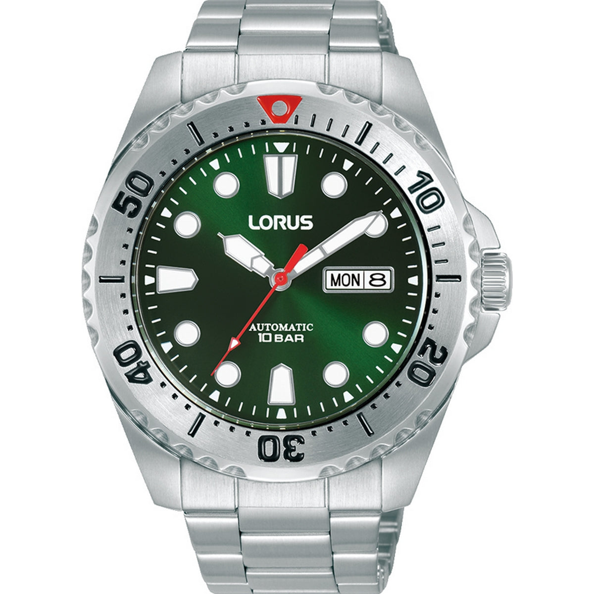 lorus automatic gents stainless steel green dial bracelet watch
