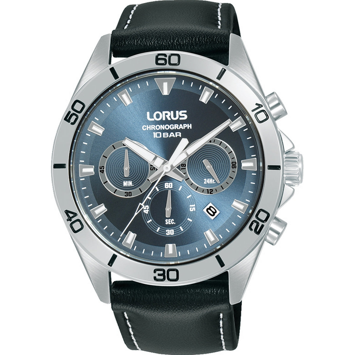 lorus quartz chronograph gents stainless steel black dial bracelet watch