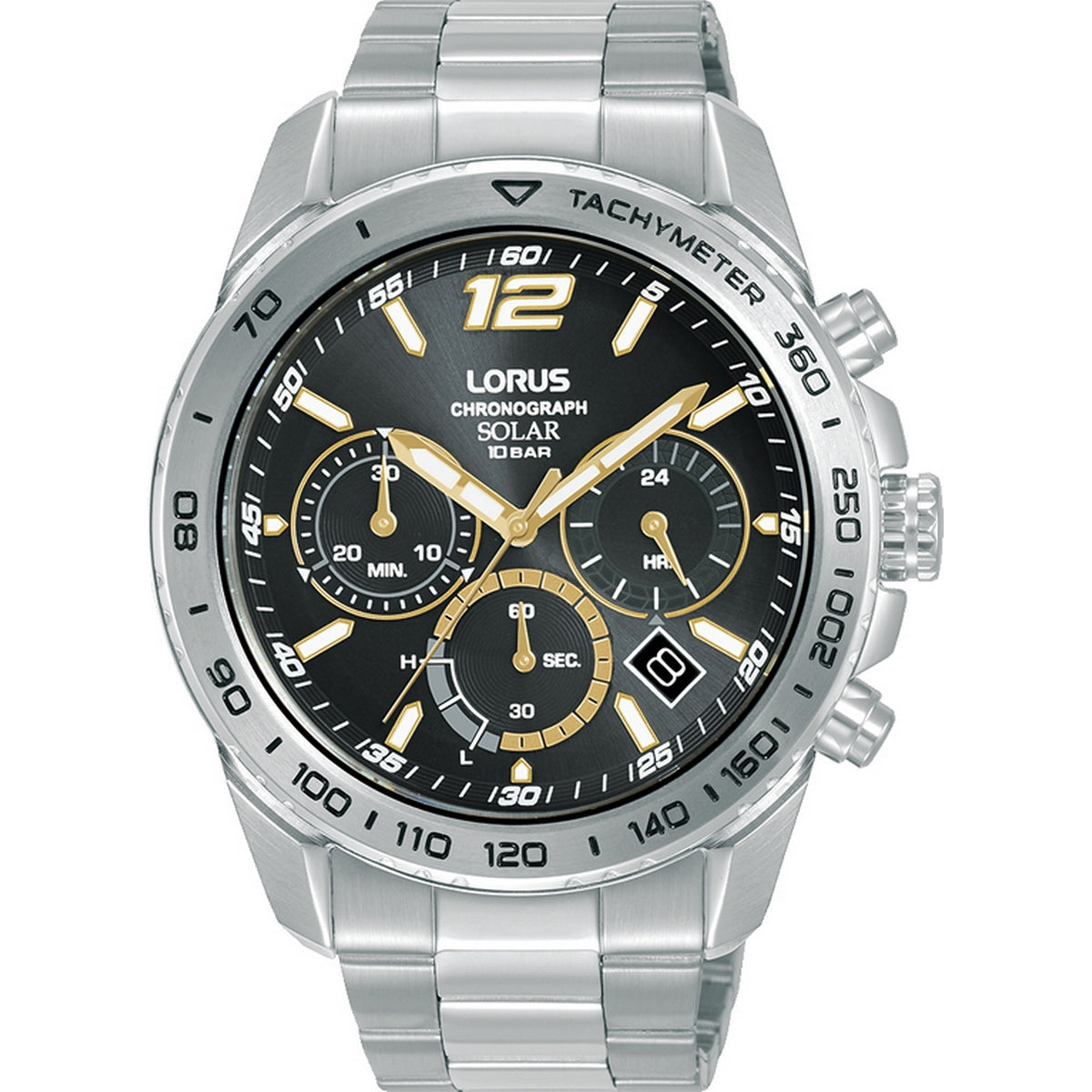 lorus solar chronograph gents stainless steel black dial bracelet watch