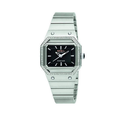 BREIL PALCO LDS BRACELET SS SQ BK TIME LADY 66 WH DIA WATCH
