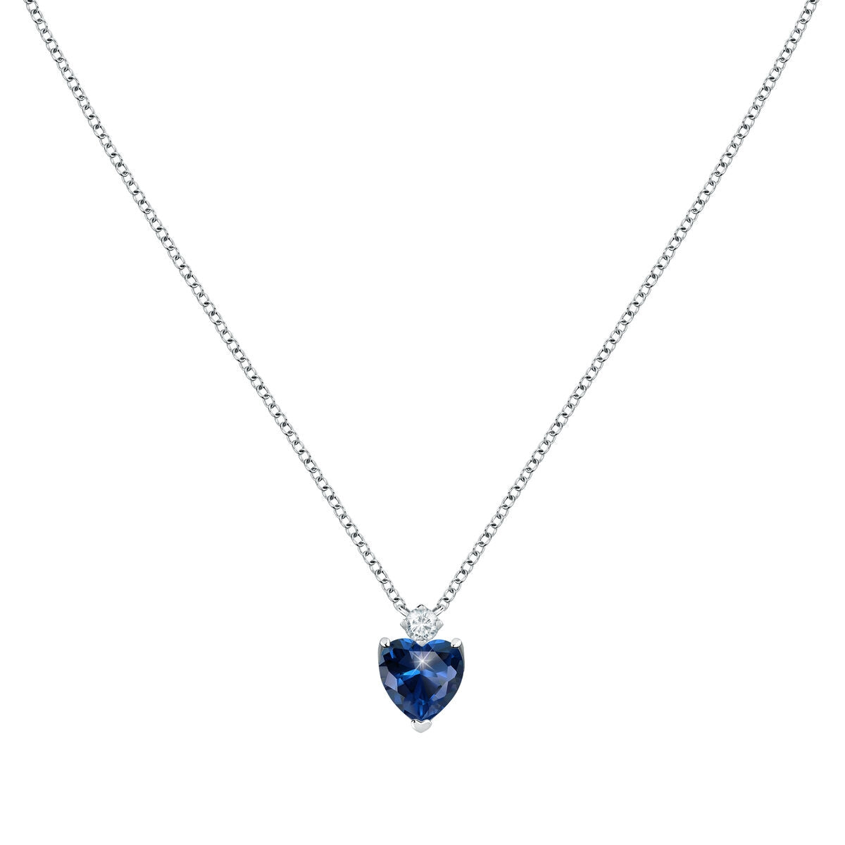 TESORI PENDANT 925 SILVER LARGE SAPHIRE HEART CZ 38+4CM