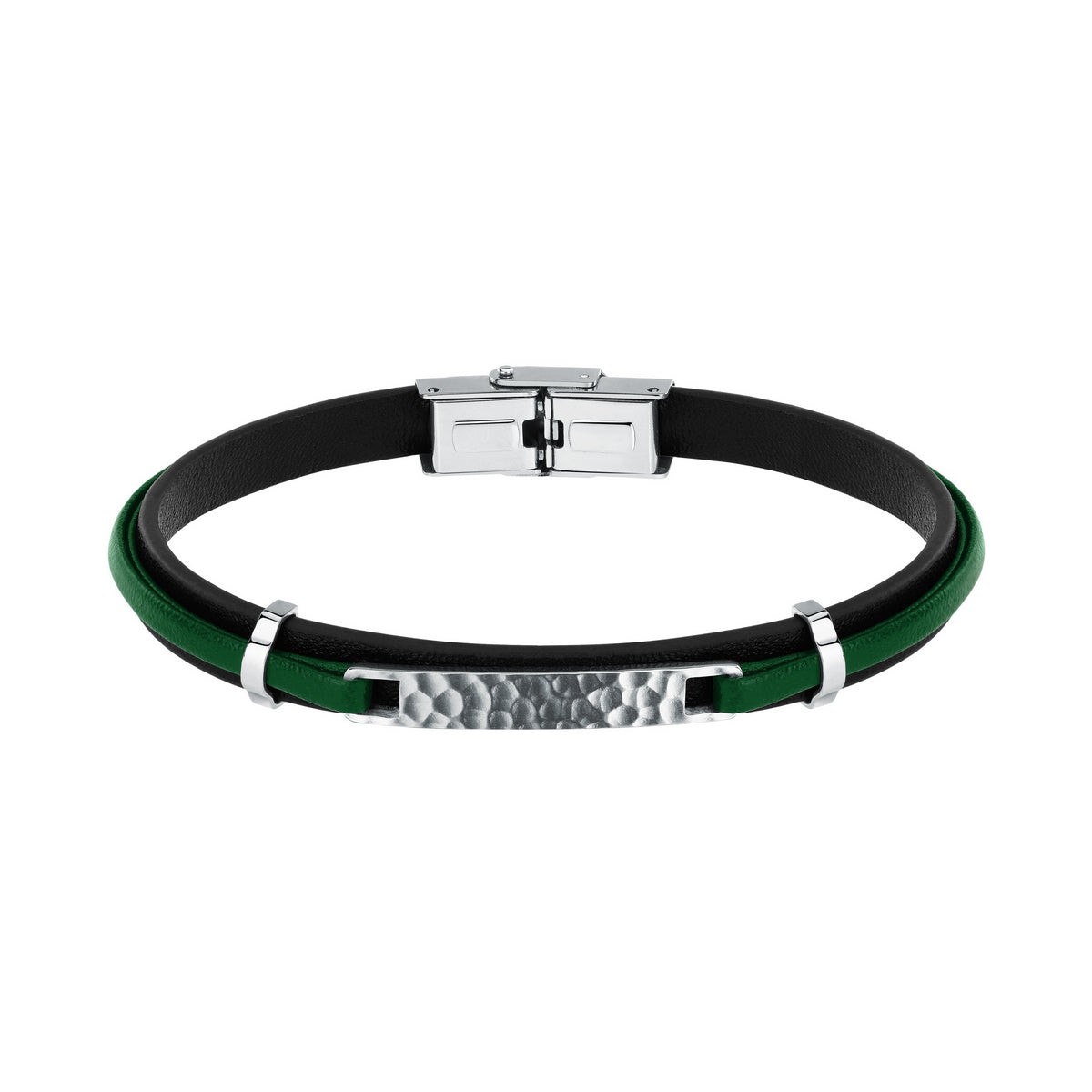 sector jewels bandy stainless steel bracelet with brown pu leather strap and tag with hammer finishing