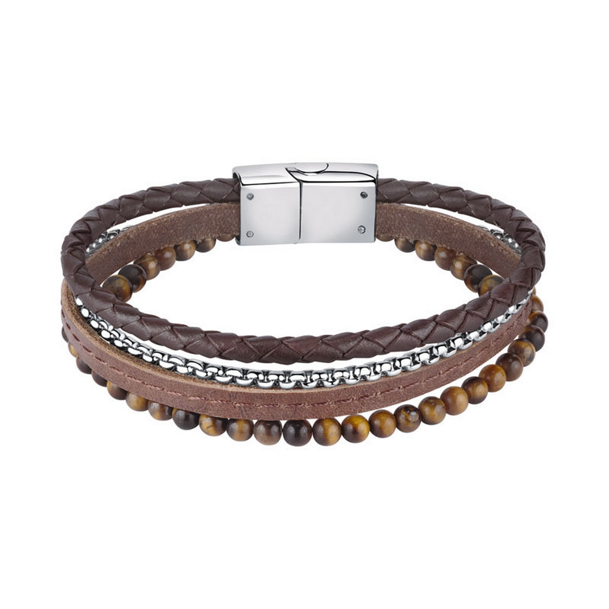 SECTOR BANDY BRACELET BN LEATHE TIGER EYE STO 22.5CM