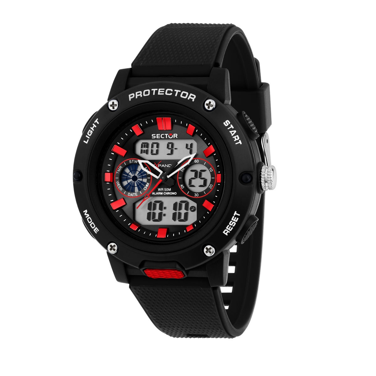 SECTOR EXPANDER EX-44 46.5MM DIGITAL RED DETAIL BLACK STRAP WATCH