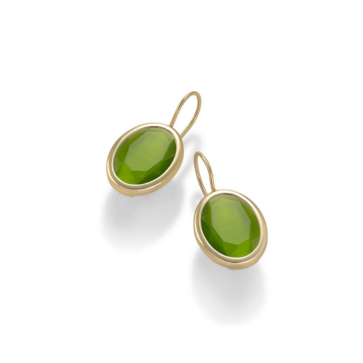 Aquaforte Caramelle Ovali leverback earrings with Cat's eye Green faceted Venitian glass