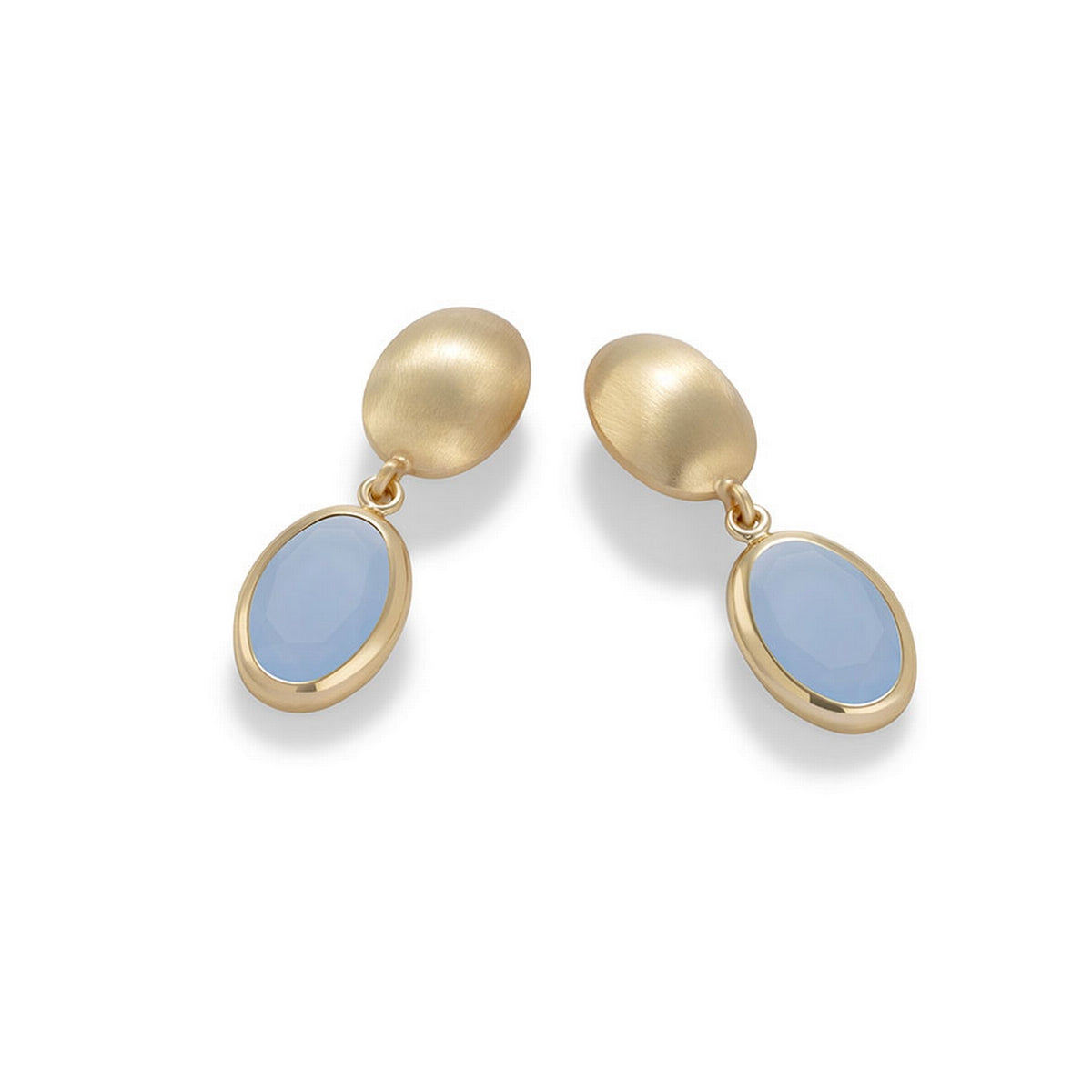 Aquaforte Caramelle Ovali pendant earrings with Milky Blue faceted Venitian glass