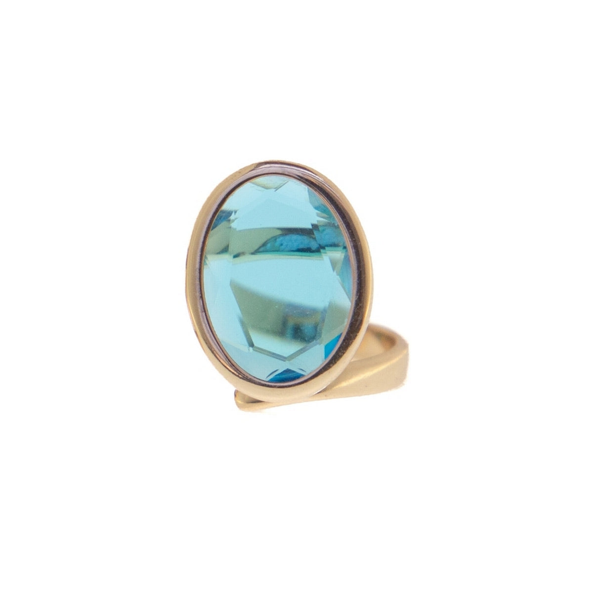 Aquaforte Caramelle Marine Ovali ring with vertical oval light petrol faceted Venitian glass